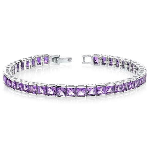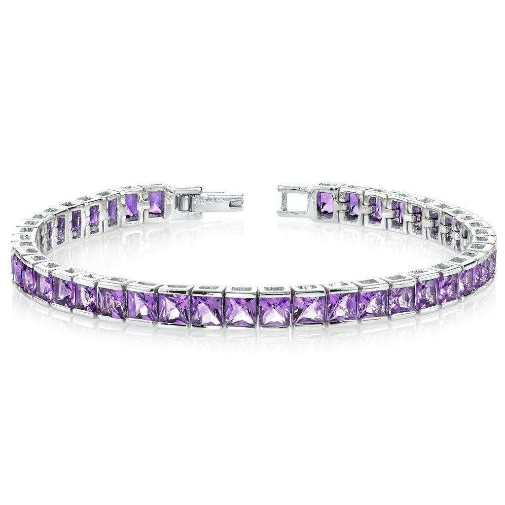 12Ct Princess Cut Purple Amethyst Elegant Tennis Bracelet 14K White Gold Finish
