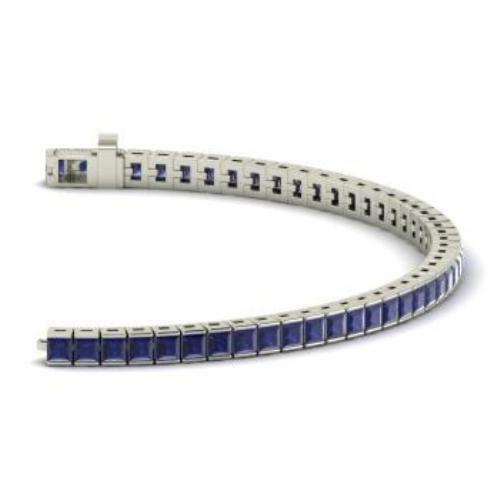 15ct Princess Cut Blue Sapphire Elegant Tennis Bracelet 14k White Gold Finish