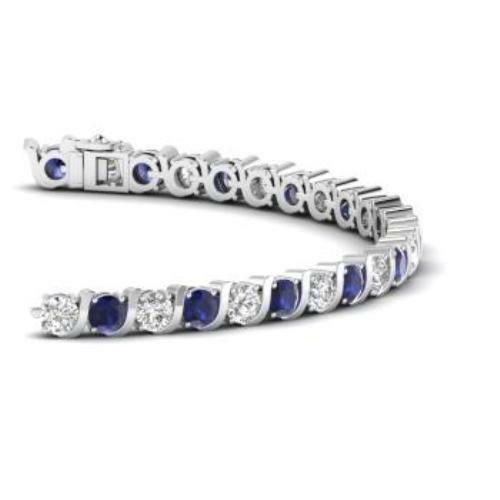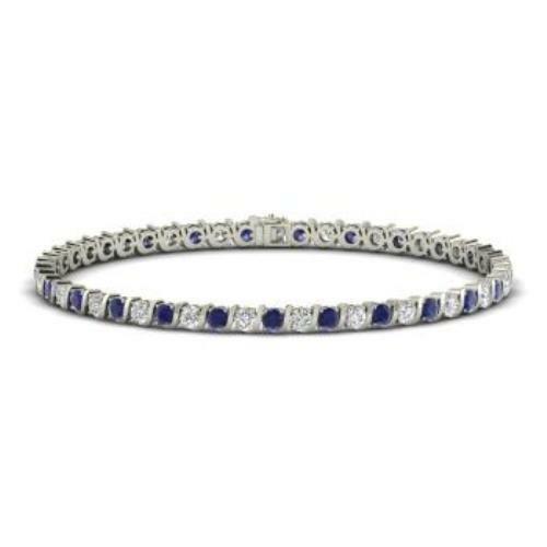 15Ct Round Blue Sapphire Diamond Wave Design Tennis Bracelet 14K White Gold Over