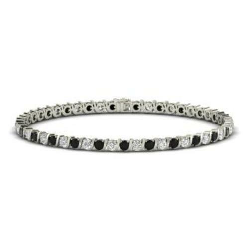 15Ct Round Cut Black Diamond Wave Design Tennis Bracelet 18K White Gold Finish