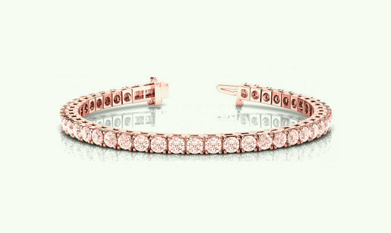 18 Ct Round Sparkle Peach Morganite Tennis Bracelet 14K Rose Gold Finish