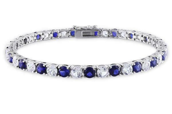 18Ct Round Cut Blue Sapphire Diamond Elegant Tennis Bracelet 14K White Gold Over