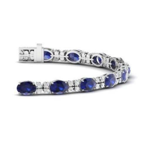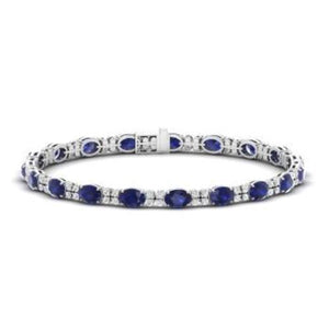20Ct Oval Cut Blue Sapphire Diamond Unique Tennis Bracelet 18K White Gold Finish