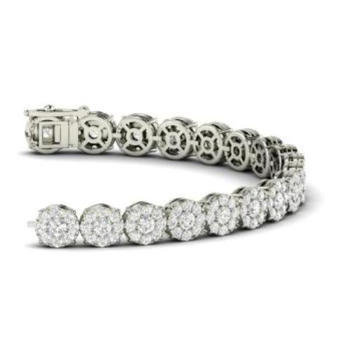 20Ct Round Cut Diamond Floral Cluster Design Tennis Bracelet 18K White Gold Over