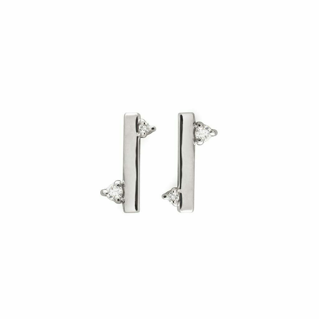 0.15ct Round Cut Diamond Vertical Bar Minimal Stud Earrings 14k White Gold Finish