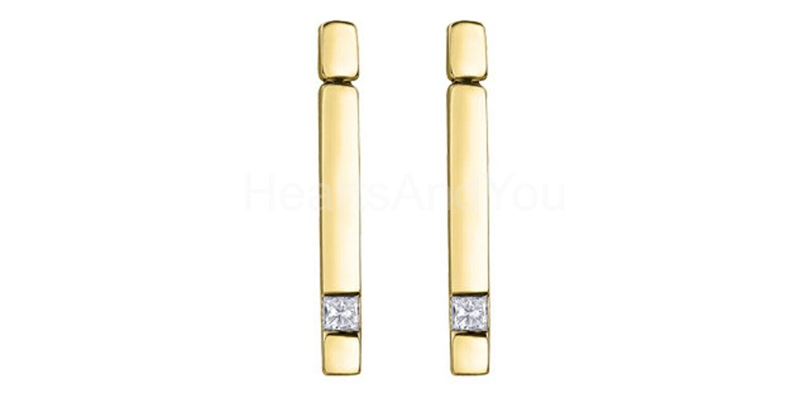 0.1ct Princess Simulated Diamond Vertical Bar Drop Earring 14k Yellow Gold Plated