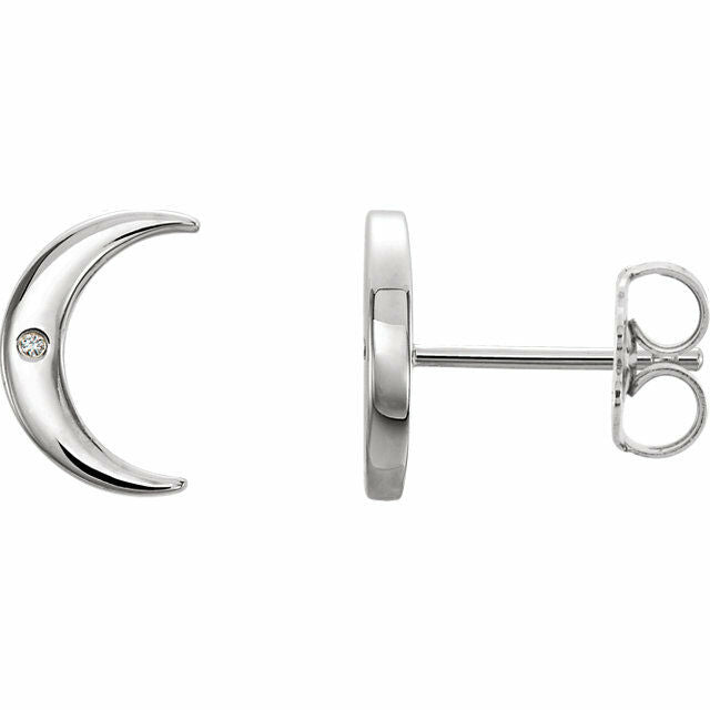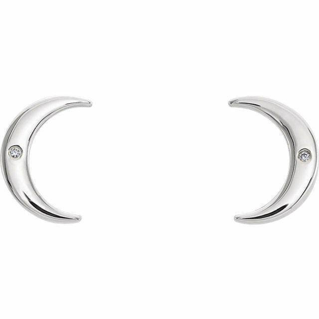 0.1ct Round Cut Diamond Half Crescent Stud Earrings Women 14k White Gold Finish