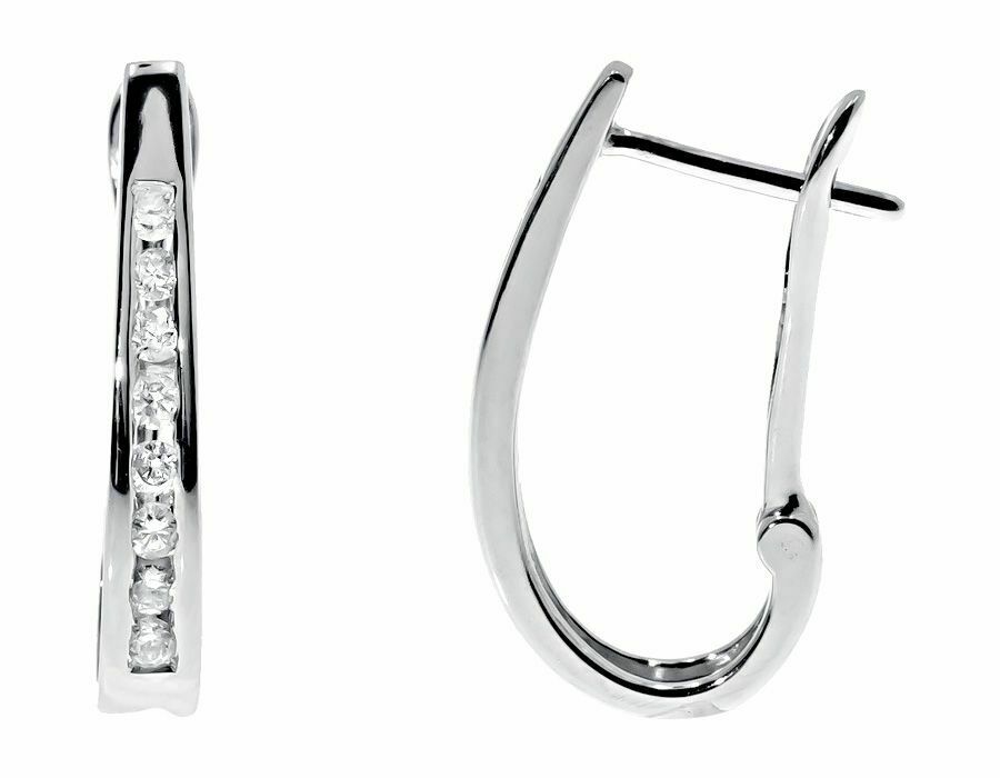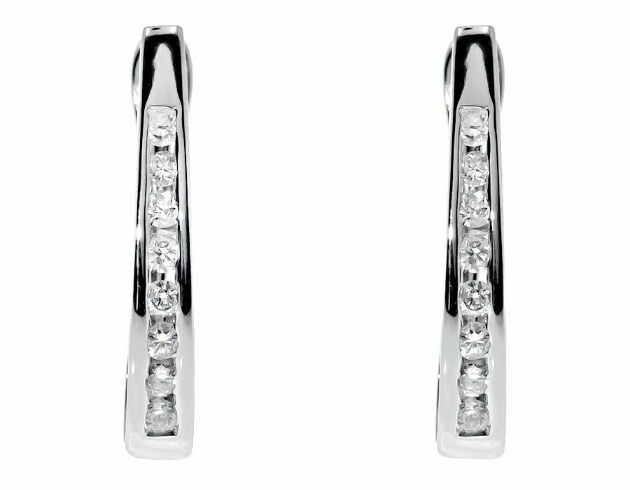 0.25ct Round Cut VVS1D Diamond Channel Set Hoop Earrings 14k White Gold Finish