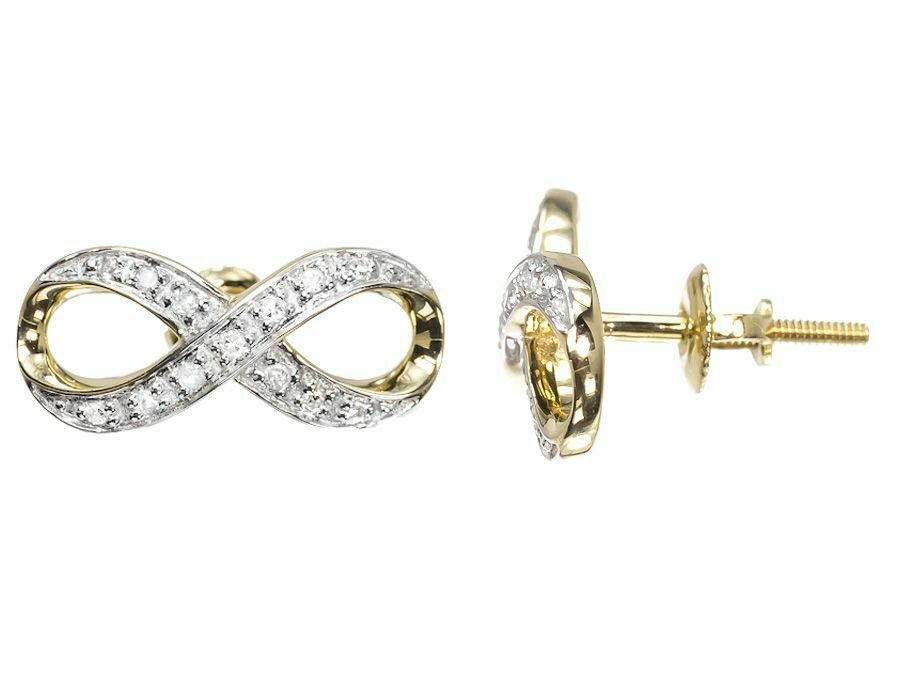 0.25ct Round Cut VVS1D Diamond Infinity Stud Earrings 14k Yellow Gold Finish