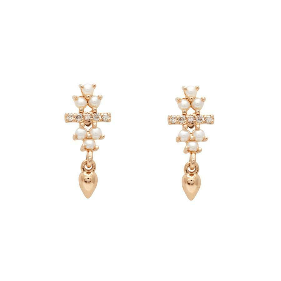 0.2ct Round Diamond & Pearl Vintage Inspired Dangle Earrings 14k Rose Gold Over