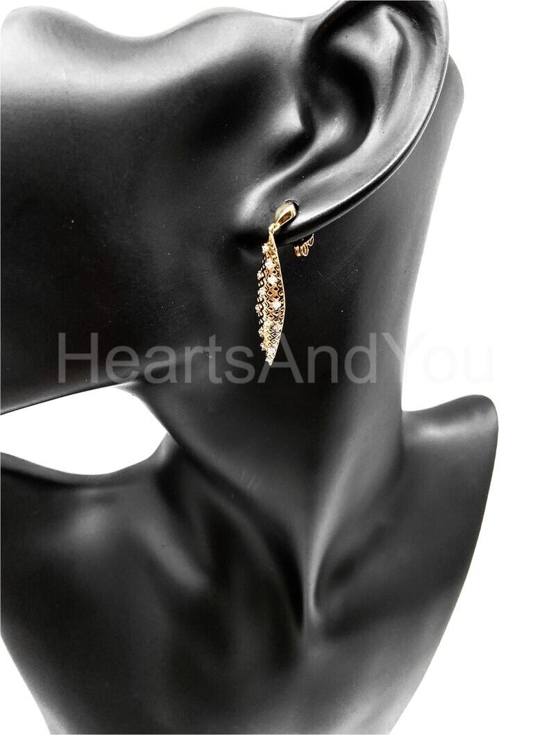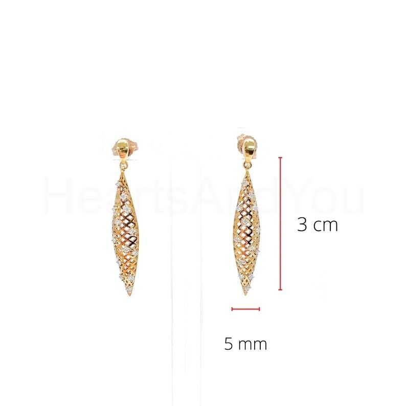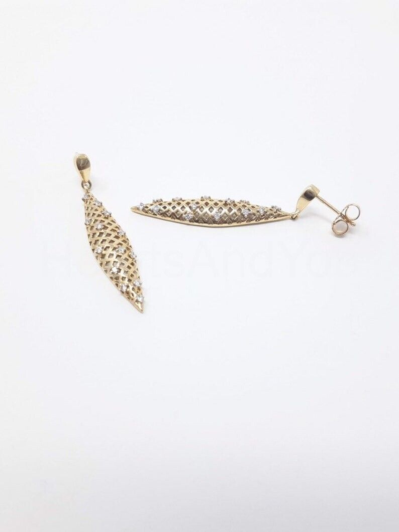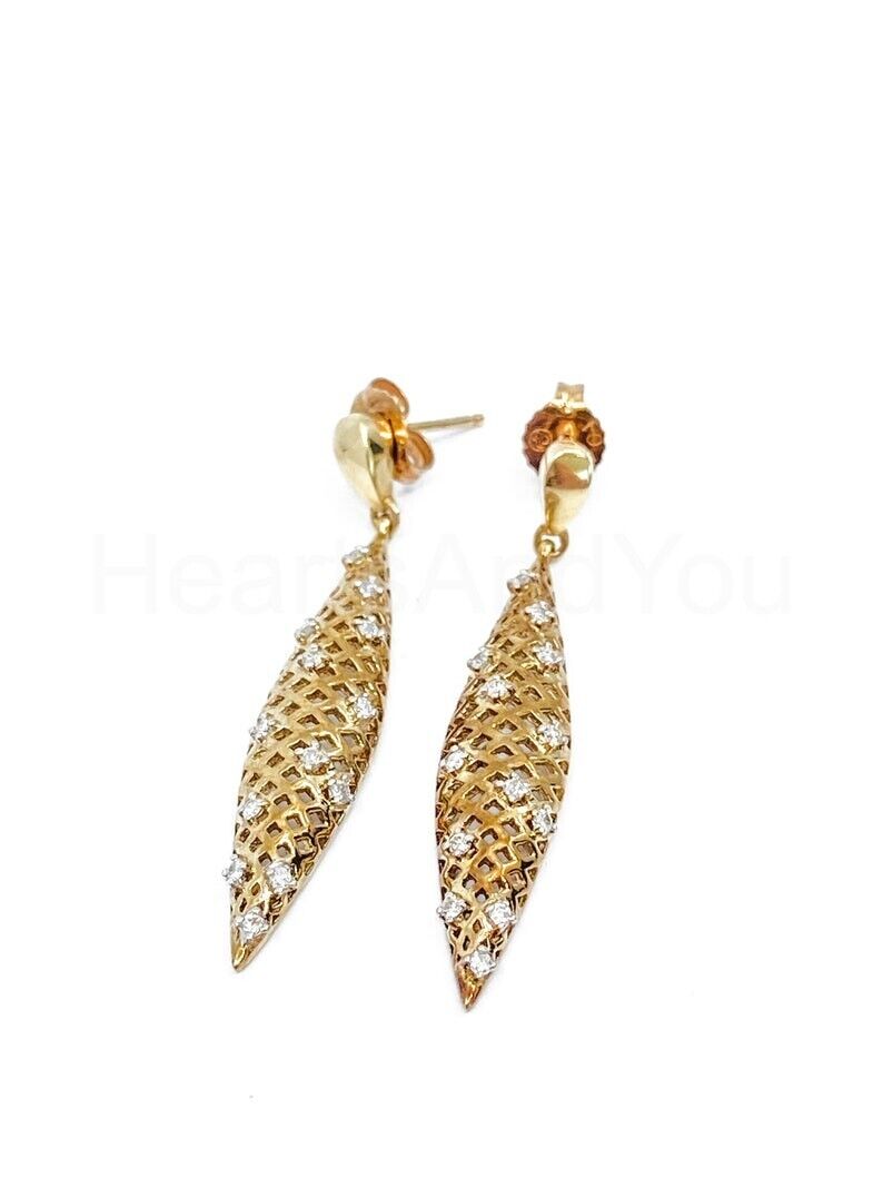 0.3ct Round Cut Moissanite Comb Mesh Dangle Earring Women 14k Yellow Gold Plated
