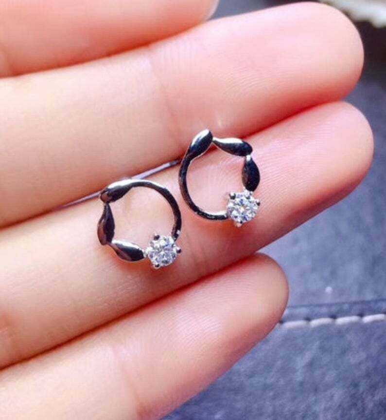 0.3ct Stud Earrings Round Cut Diamond Leaf Design 14k White Gold Finish