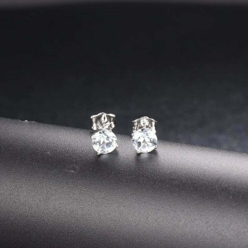 0.45ct Stud Earrings Round Cut Diamond Solitaire Women 14k White Gold Finish