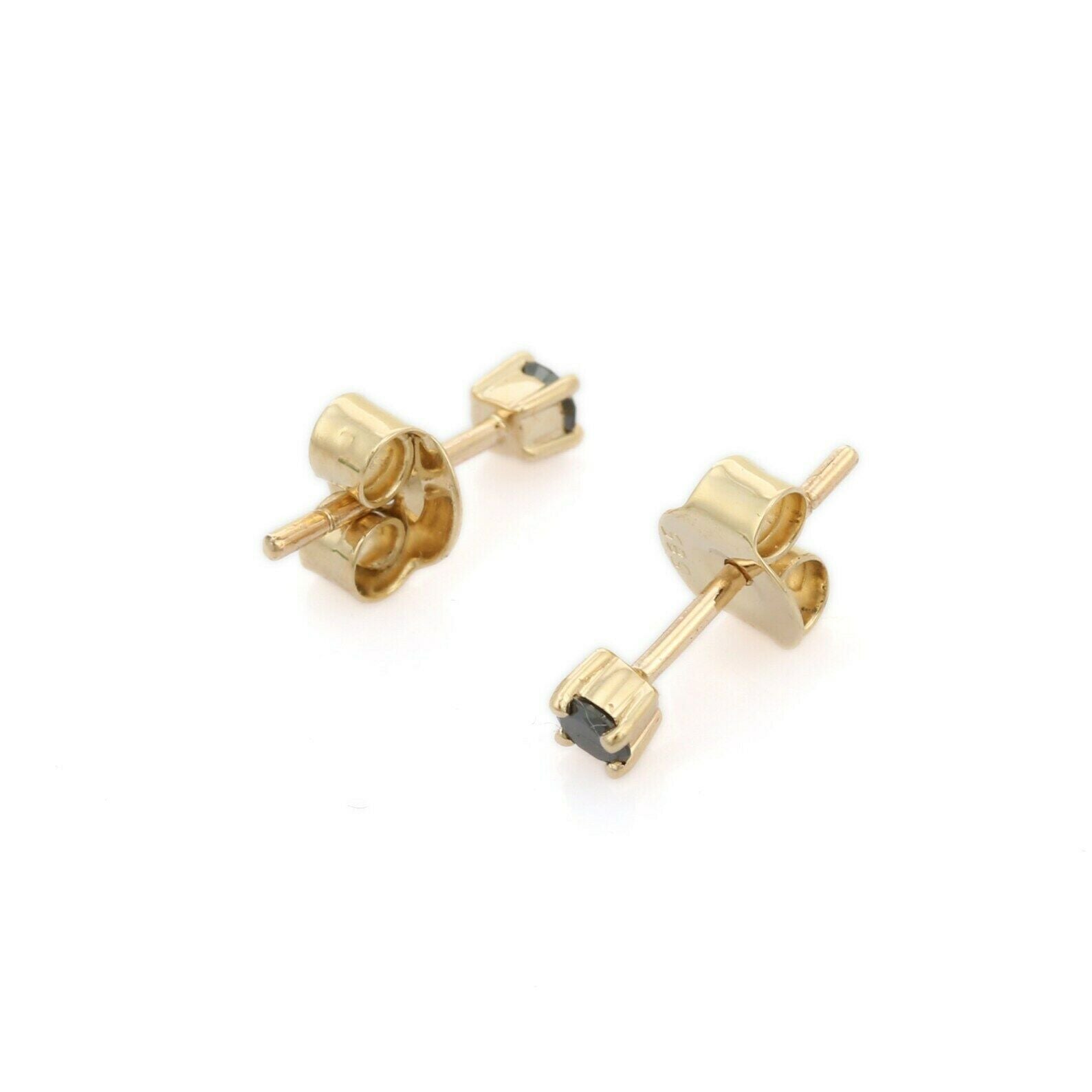 0.4ct Stud Earrings Round Cut Black Diamond Solitaire 14k Yellow Gold Finish