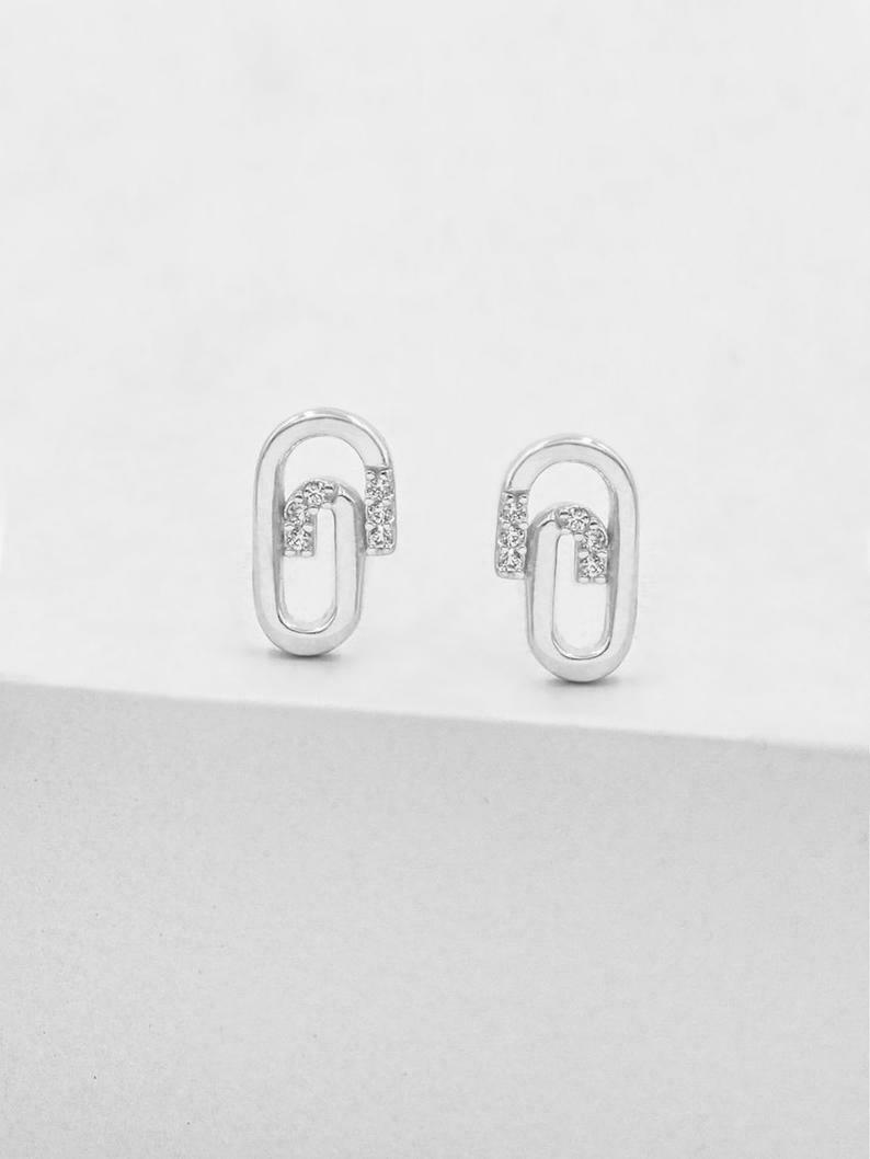 0.4ct Stud Earrings Round Cut Diamond Paper Clip Design 14k White Gold Finish