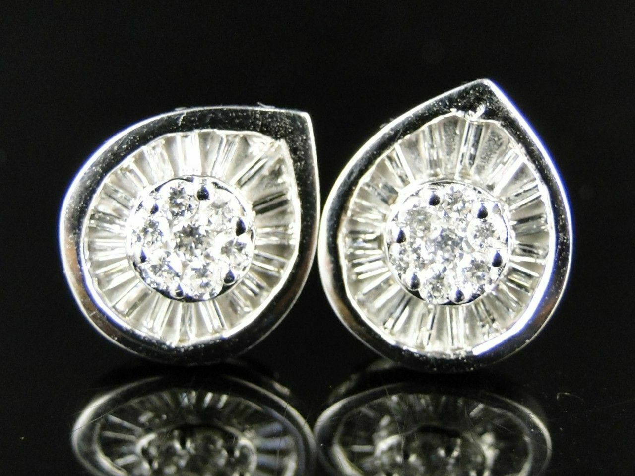 0.5ct Round Baguette Cut Diamond Halo Stud Earrings Women 14k White Gold Finish
