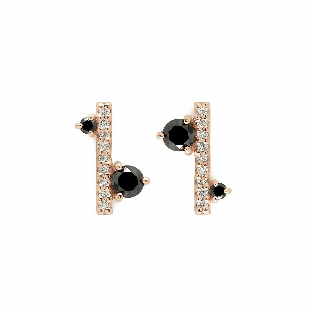 0.5ct Round Black Diamond Vertical Bar Minimal Stud Earrings 14k RoseGold Finish