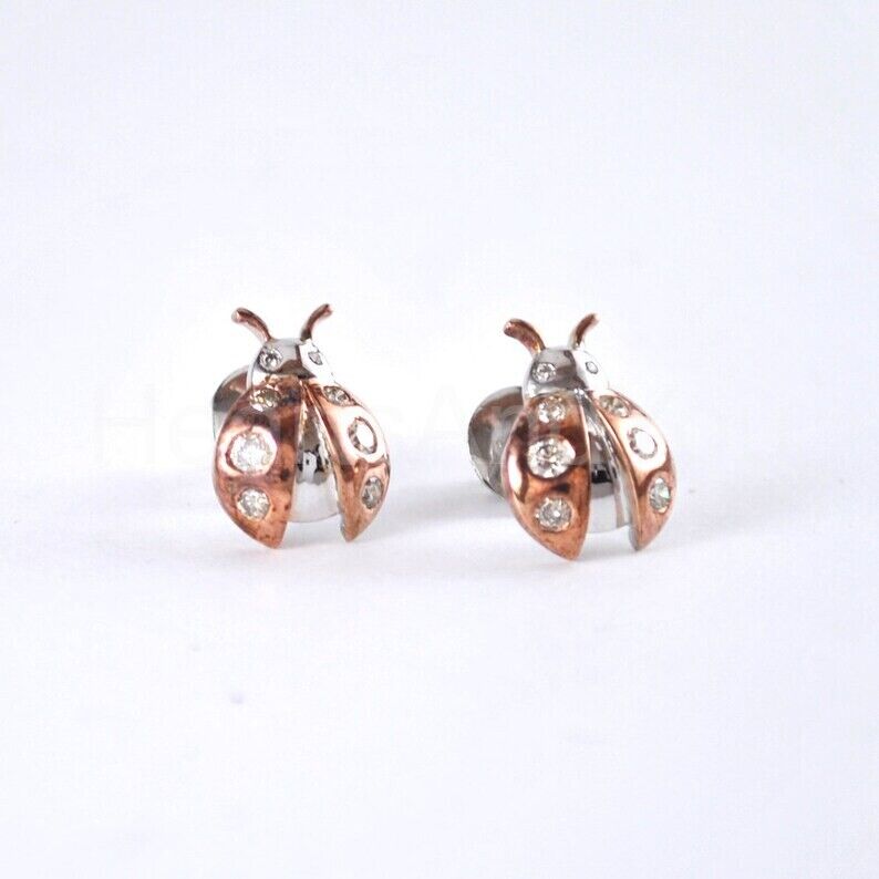 0.5ct Round Cut Moissanite Ladybug Stud Earrings For Women 14K Dual Gold Plated
