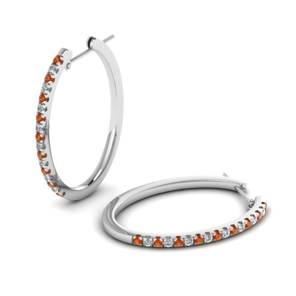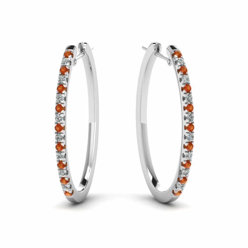 0.5ct Round Cut Orange Diamond Inside Out Hoop Earring 14k White Gold Finish New