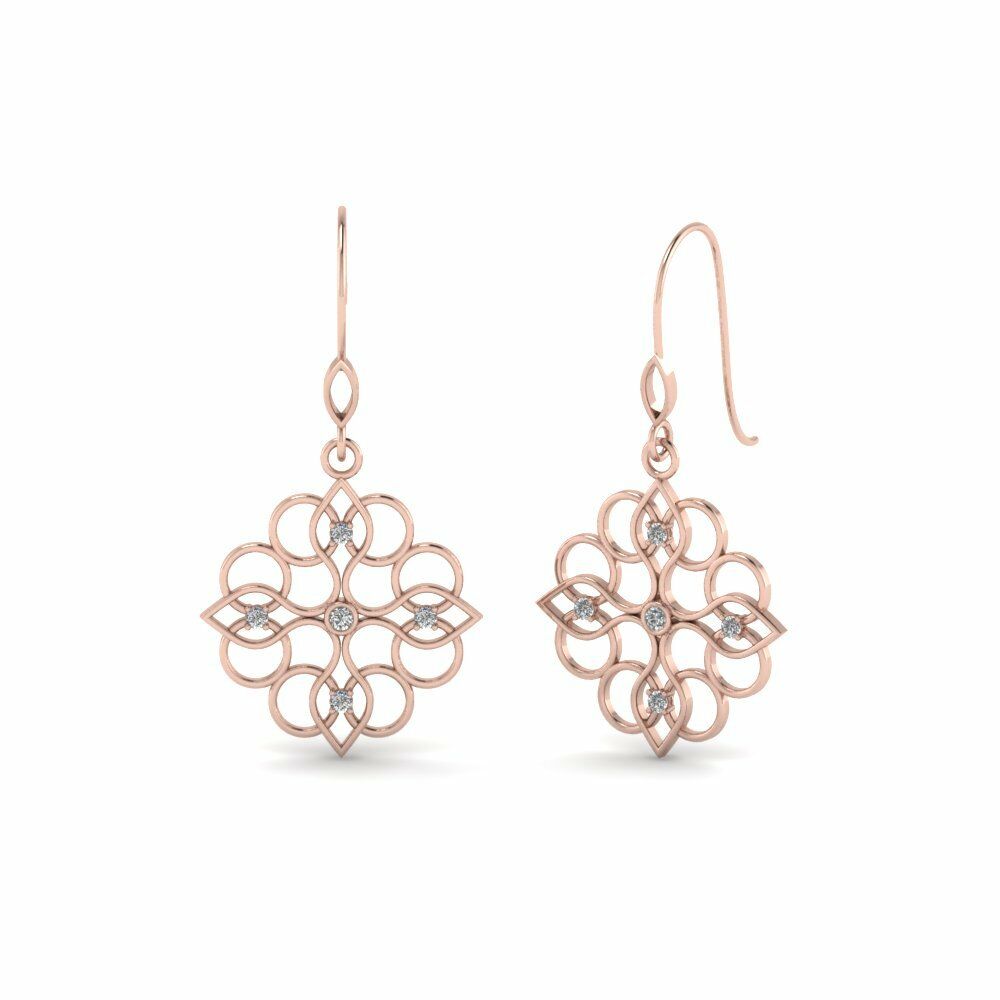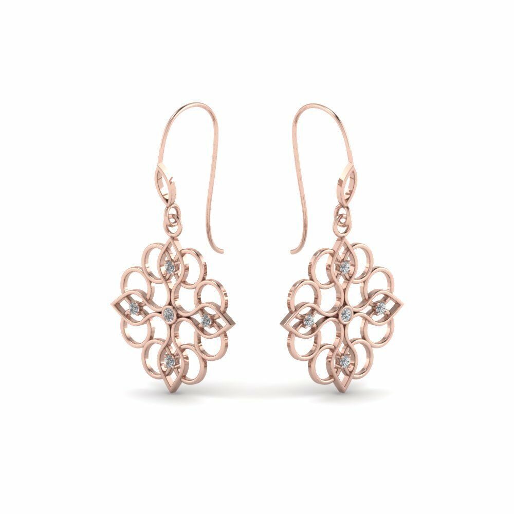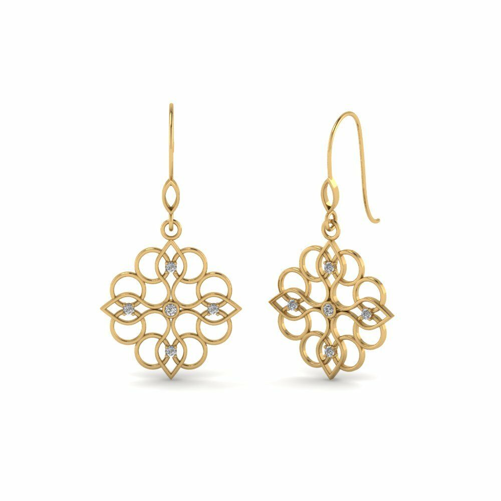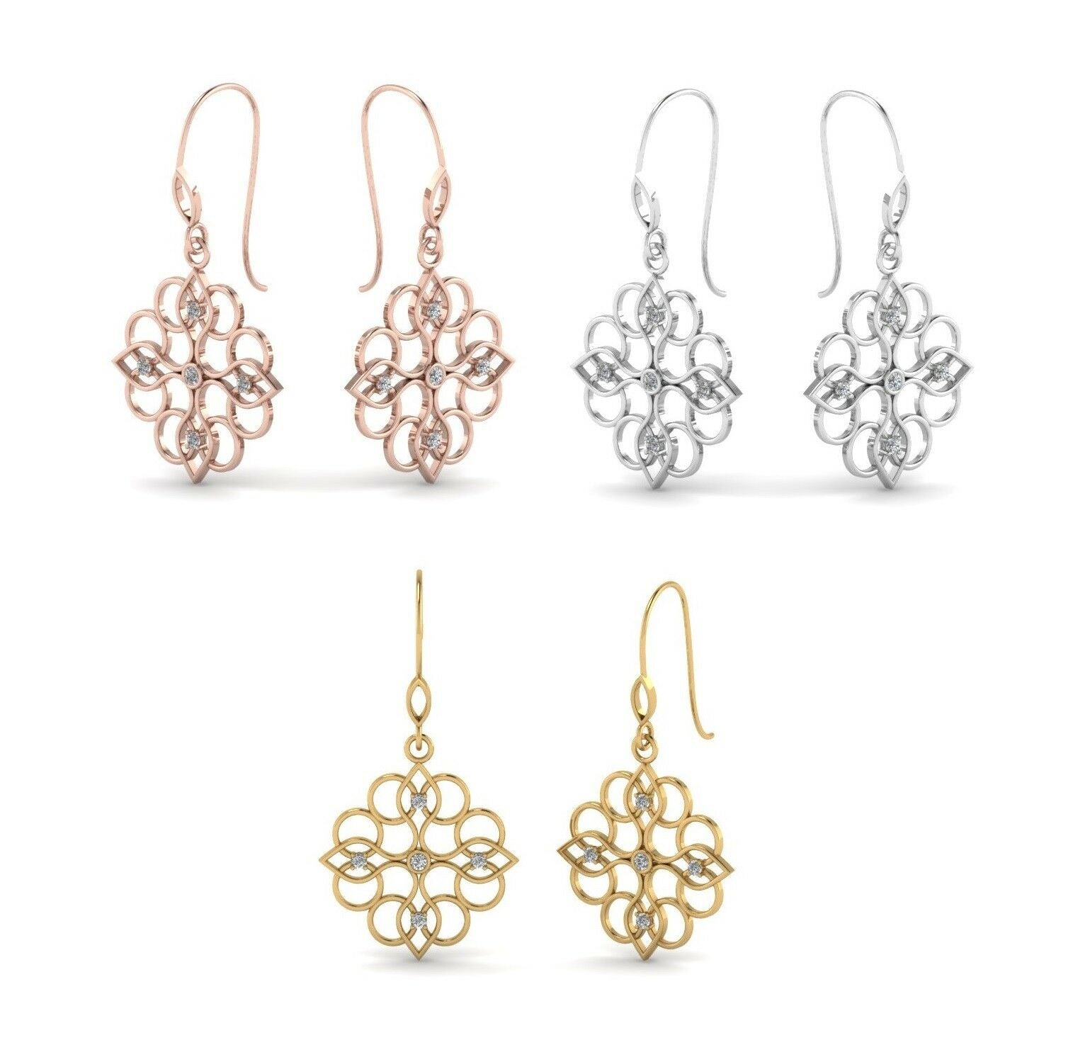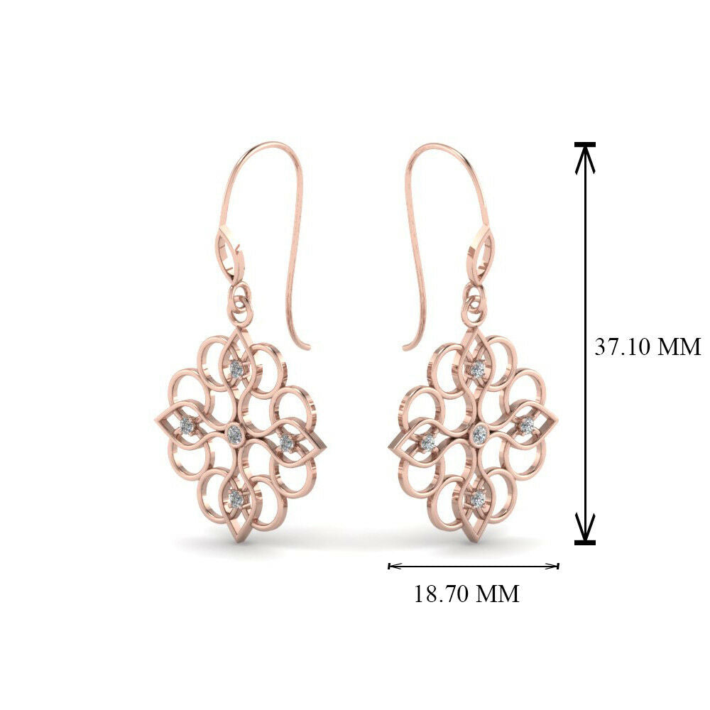 0.5ct Round Cut VVS1 Diamond Filigree Flower Drop Earrings Women 14k Gold Finish