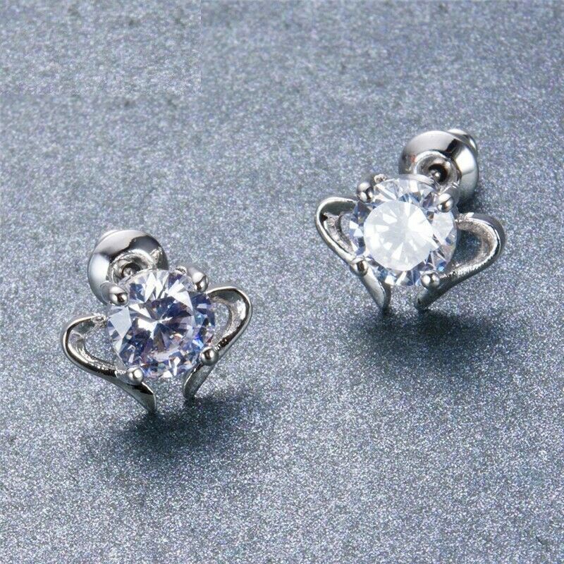 0.5ct Round Cut VVS1 Diamond Unique Design Stud Earrings 14k White Gold Finish