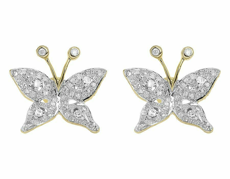 0.5ct Round Cut VVS1D Diamond Butterfly Stud Earrings 14k Yellow Gold Finish