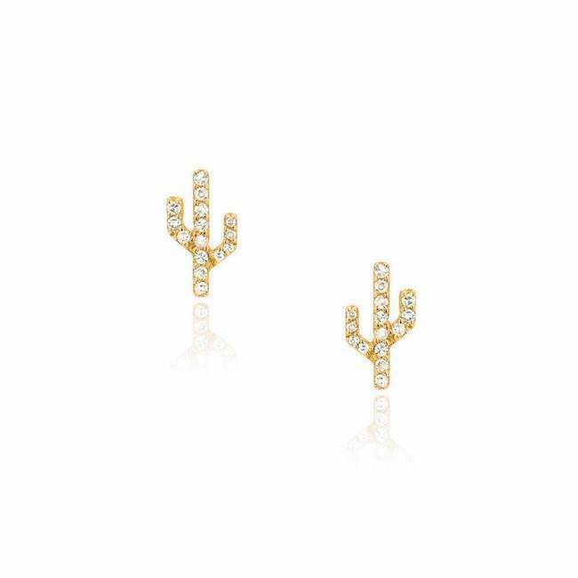 0.5ct Round Cut VVS1D Diamond Cactus Petite Stud Earrings 14k Yellow Gold Finish