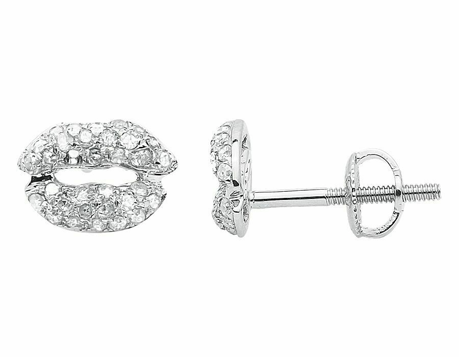 0.5ct Round Cut VVS1D Diamond Lips Stud Earrings Women 14k White Gold Finish