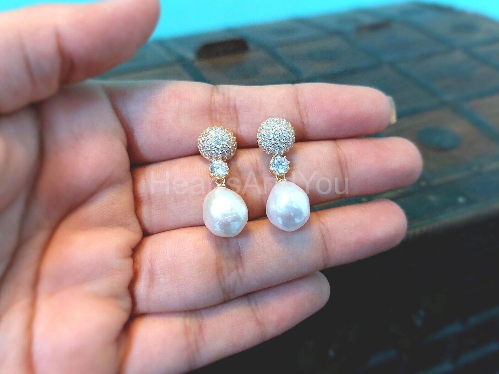 0.5ct Round Cut Simulated Diamond Pearl Cluster Drop Earring 14k Yellow Gold Plated