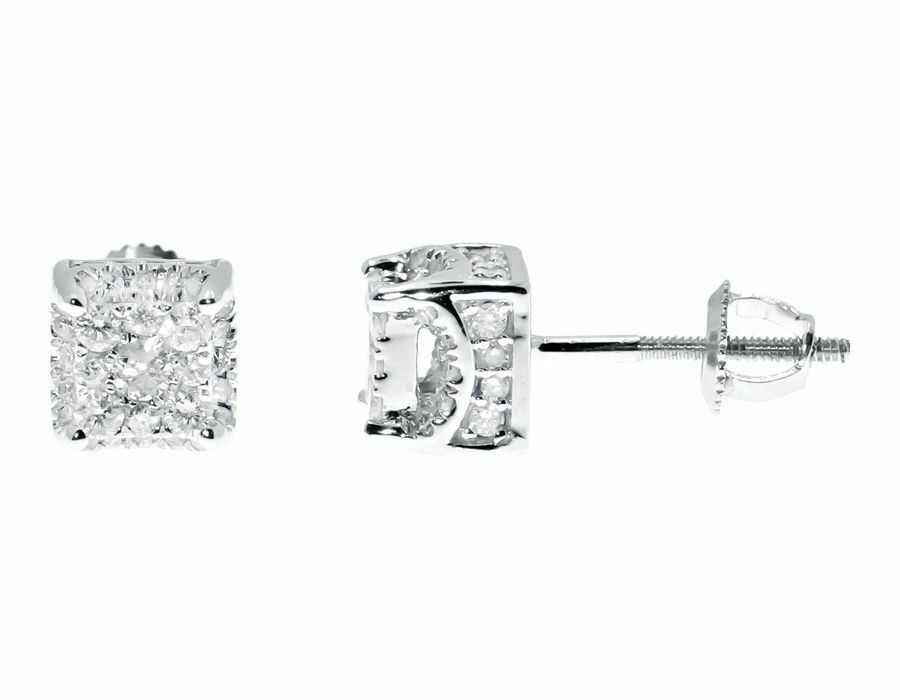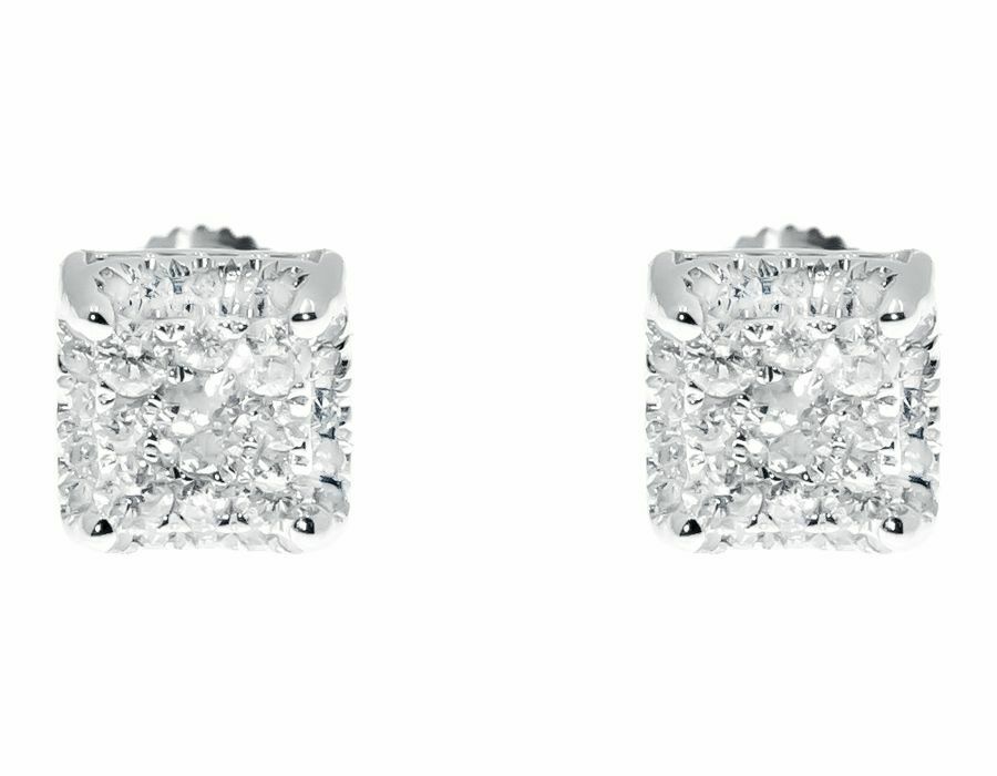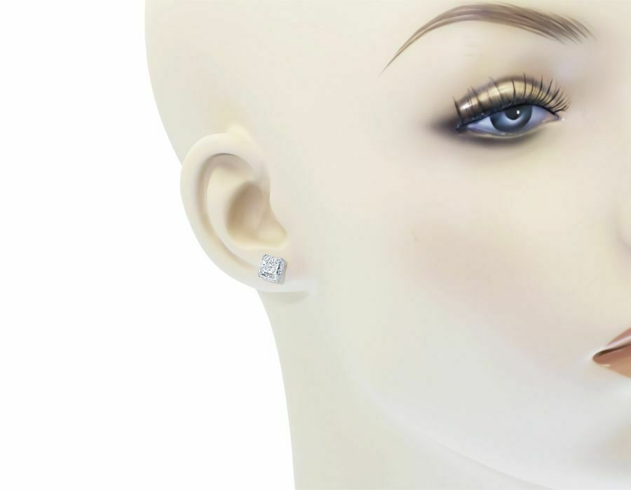 0.65ct Round Cut VVS1 Diamond Square Cluster Stud Earrings 14k White Gold Finish