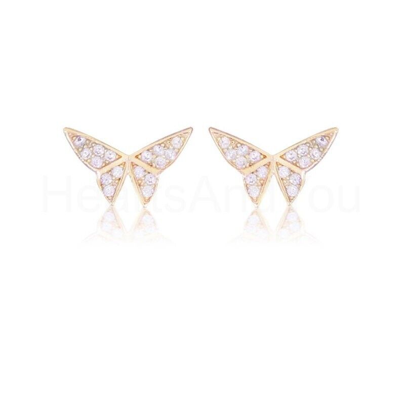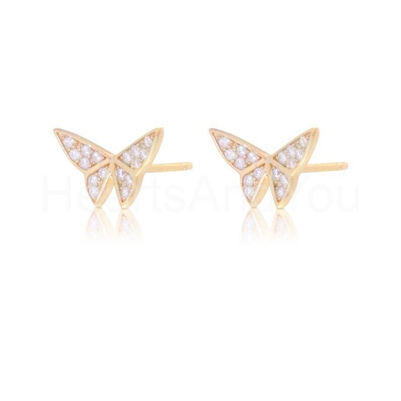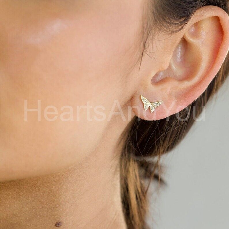 0.6ct Round Cut Moissanite Butterfly Stud Earrings 14k Yellow Gold Plated