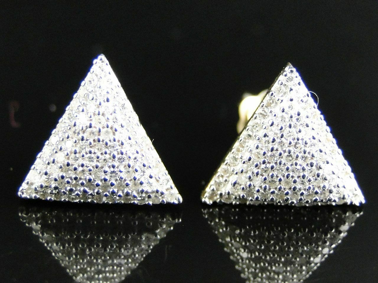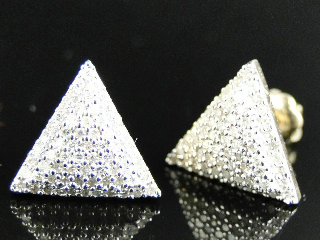 0.6ct Round Cut VVS1 Diamond Triangle Cluster Stud Earrings 14k Yellow Gold Over