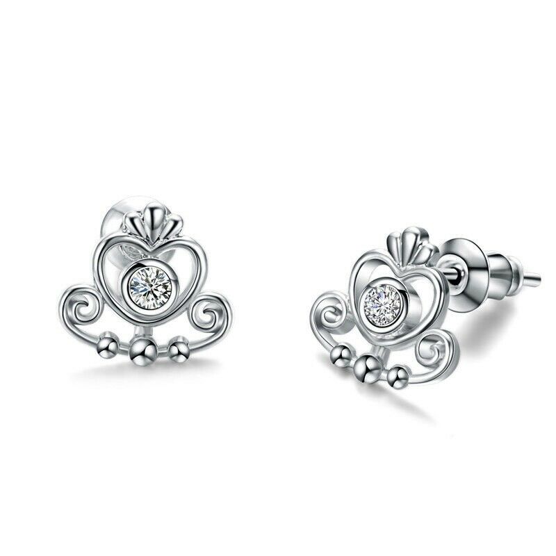 0.6ct Round Cut VVS1D Diamond Unique Design Stud Earrings 14k White Gold Finish