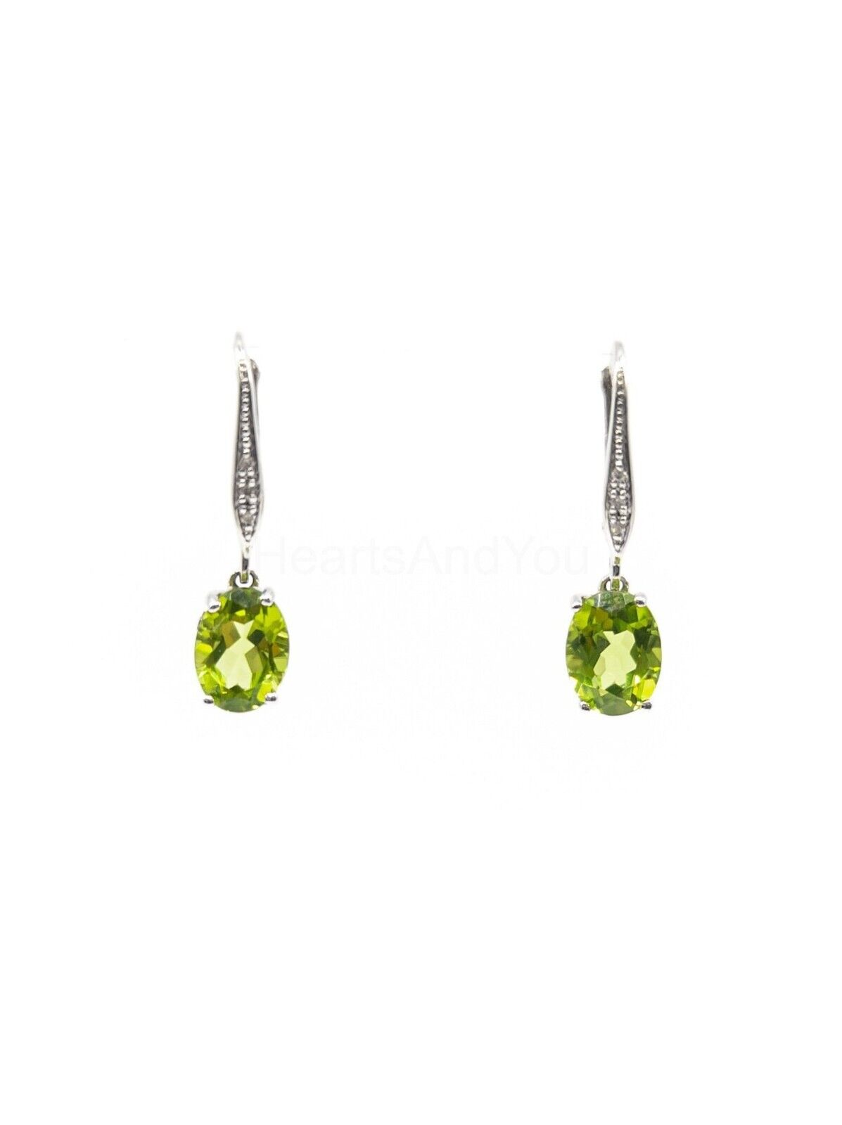 0.75ct Oval Simulated Peridot Solitaire Drop Earrings 14k White Gold Plated