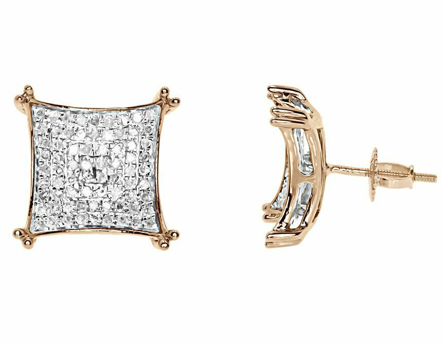 0.75ct Round Cut Diamond Kite Cluster Hip Hop Stud Earrings 14k Rose Gold Finish
