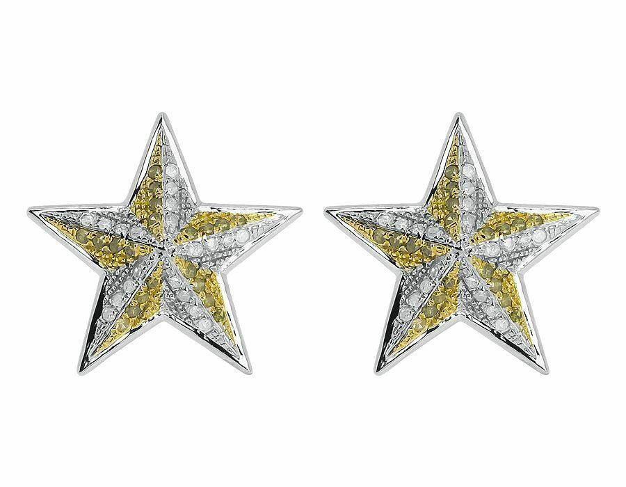 0.75ct Round Cut VVS1D Diamond Star Design Stud Earrings 14k Dual Tone Finish