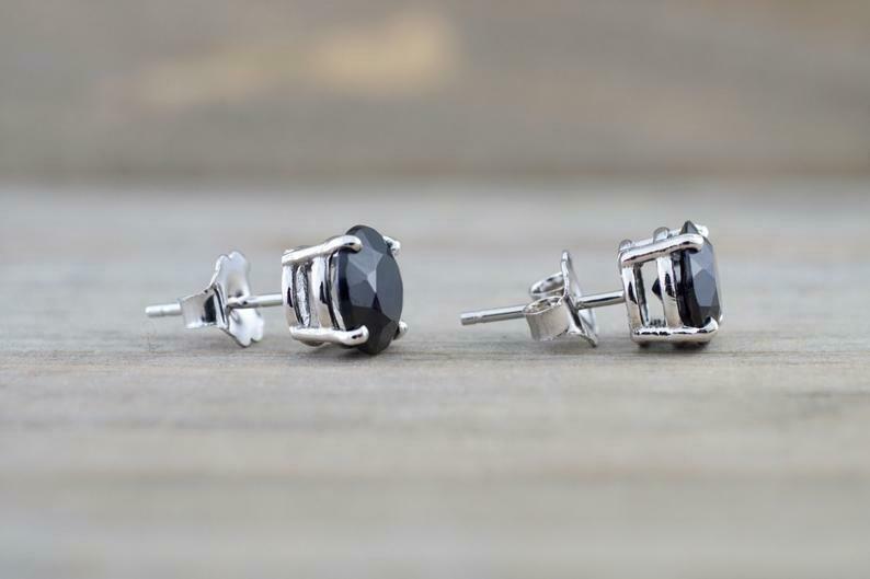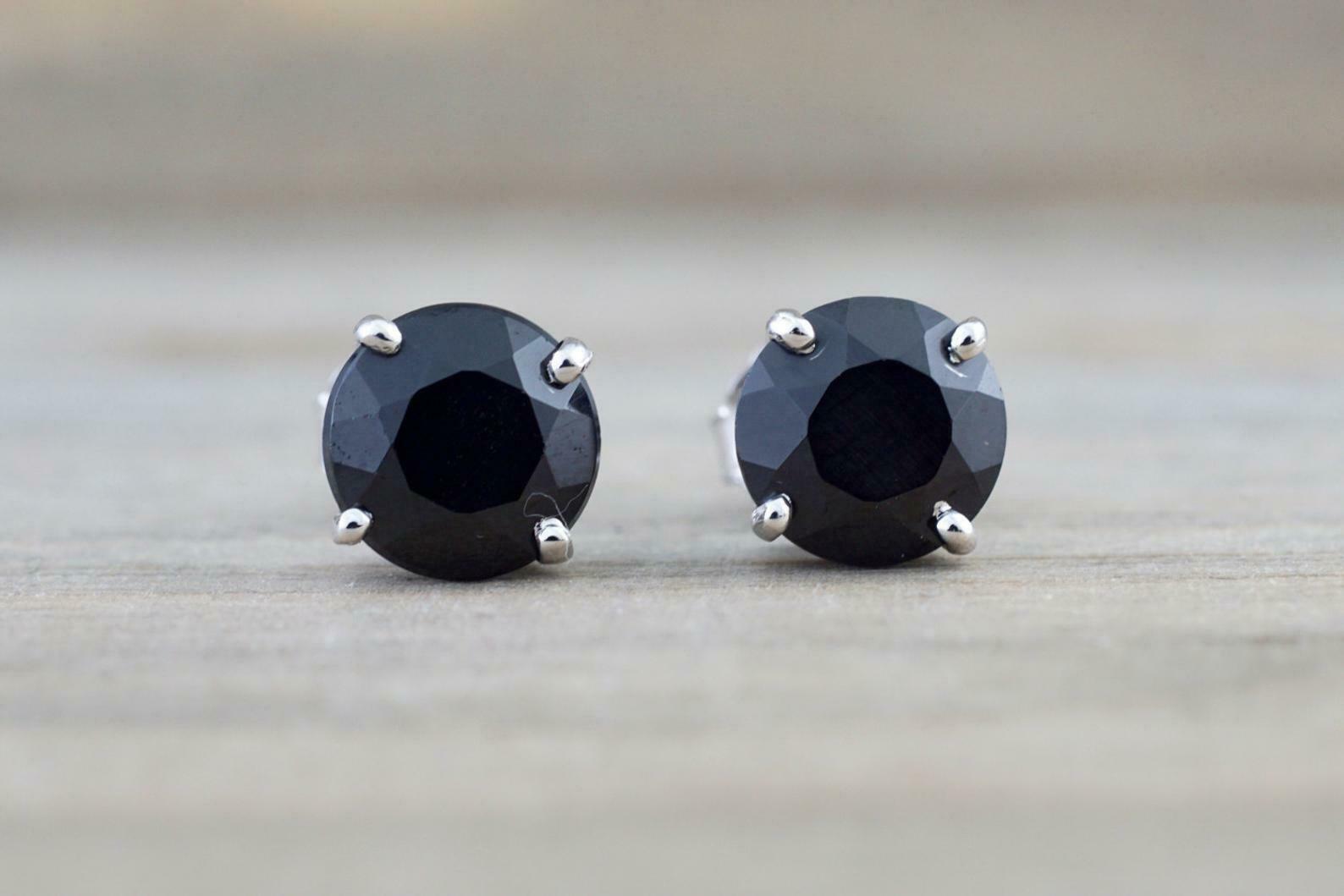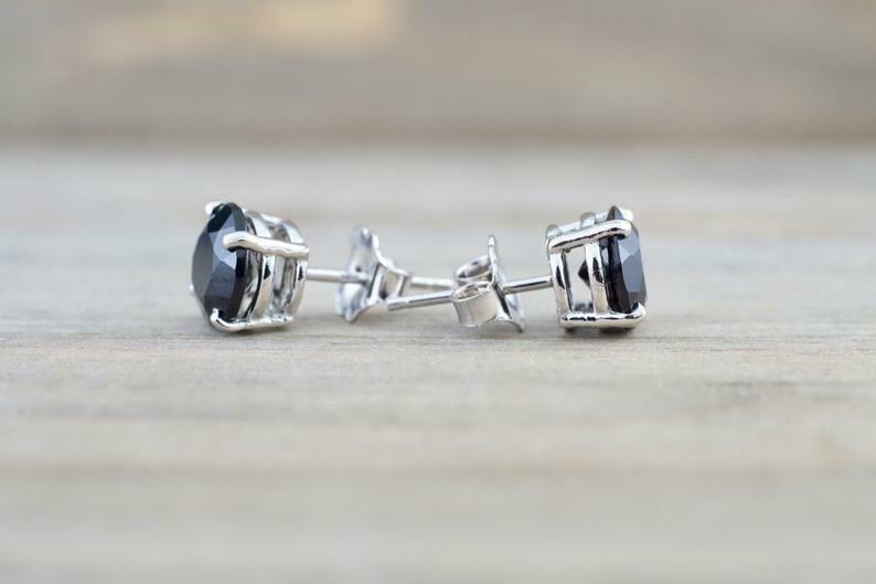 0.7ct Round Cut Black Diamond 4 Prong Solitaire Stud Earrings 14k White Gold Over