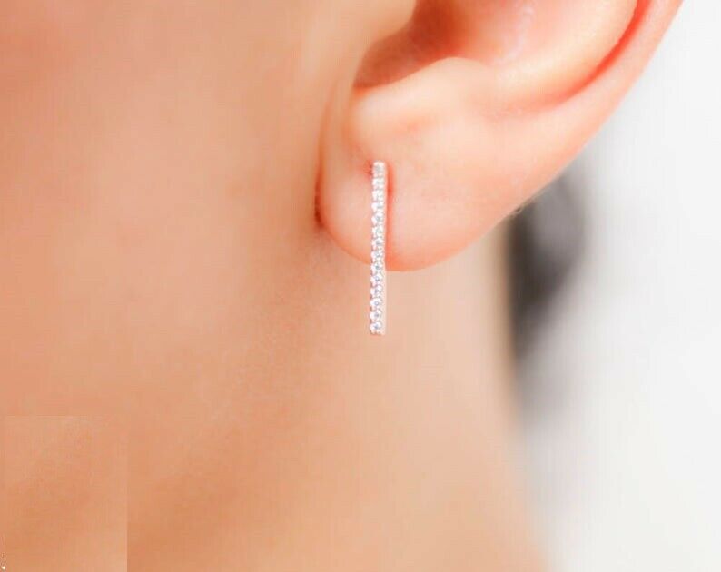 0.7ct Round Cut Diamond Vertical Bar Stud Earrings Women 14k Rose Gold Finish