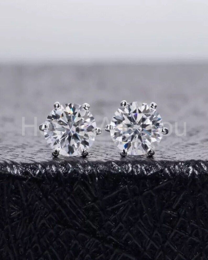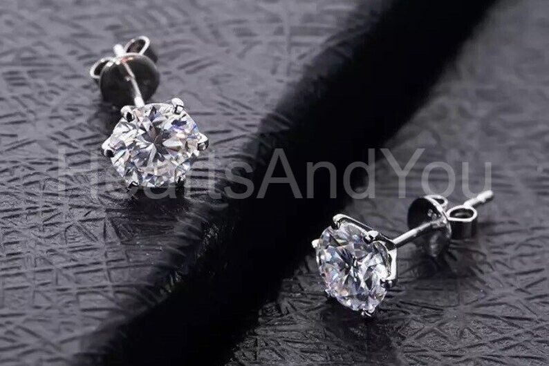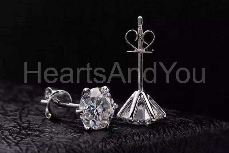 0.7ct Round Cut Moissanite Solitaire Stud Earrings Women 14k White Gold Plated