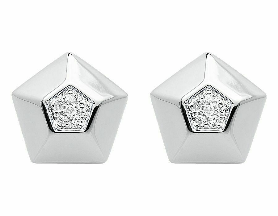 0.7ct Round Cut VVS1 Diamond Pentagon Design Stud Earrings 14k White Gold Finish