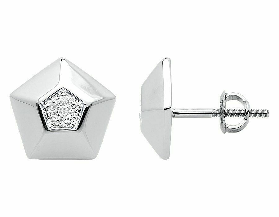 0.7ct Round Cut VVS1D Diamond Pentagon Design Stud Earrings 14k White Gold Finish
