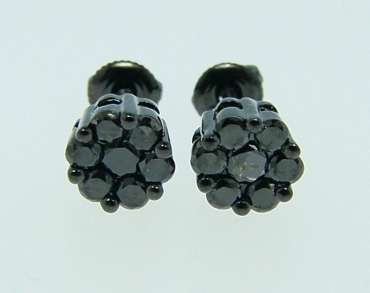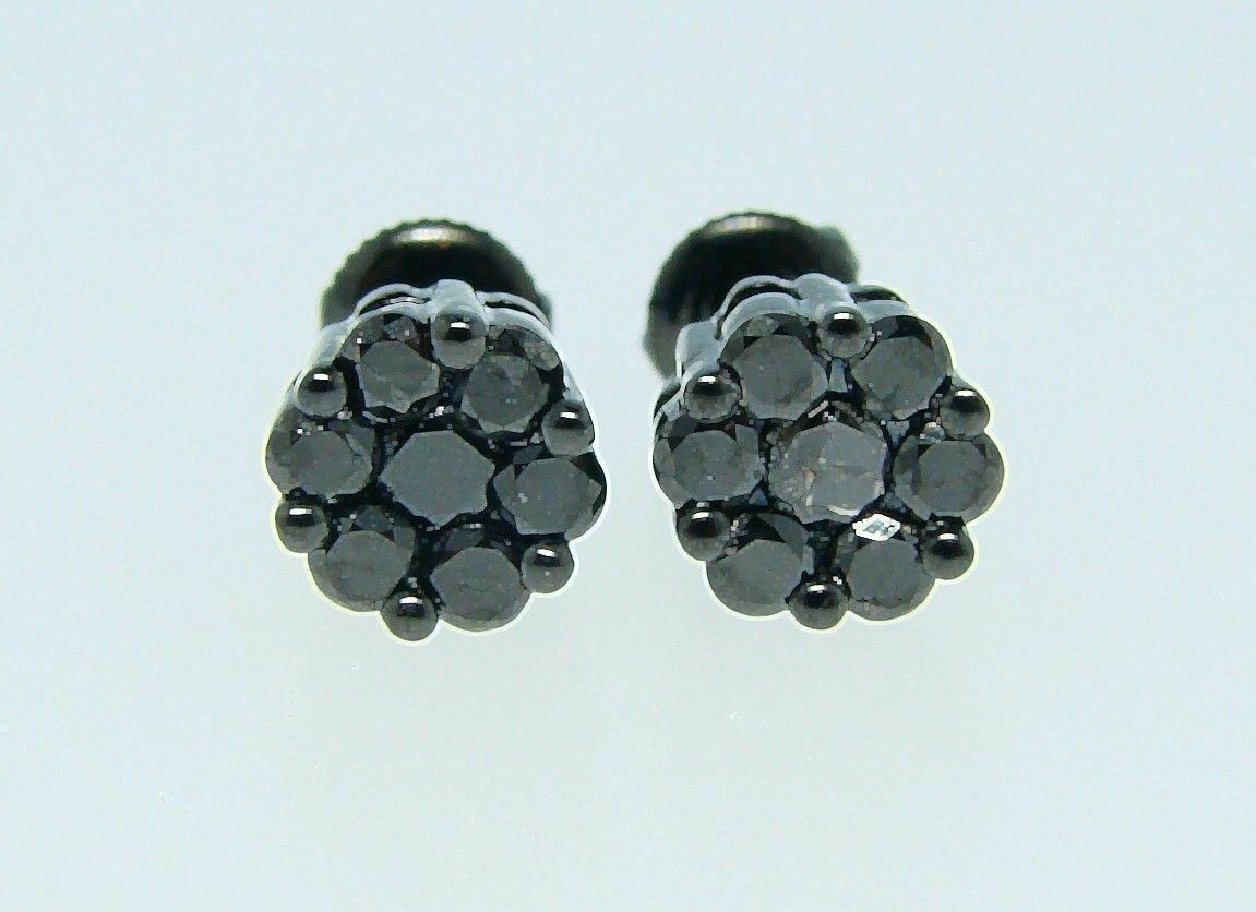 1.15ct Round Cut Black Diamond Flower Stud Earrings Women 14k Black Gold Finish