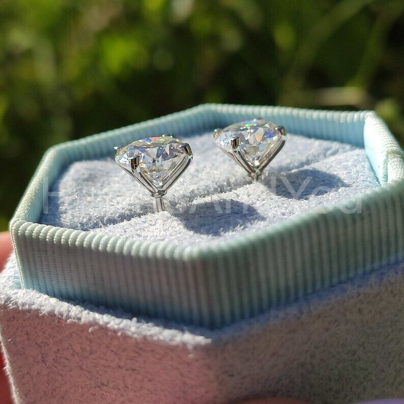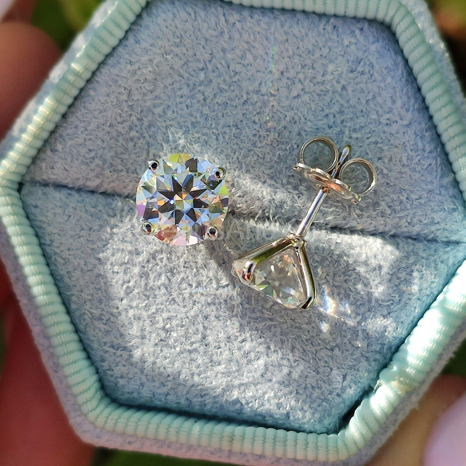 1.25ct Round Cut Moissanite Solitaire Stud Women Earrings 14k White Gold Plated