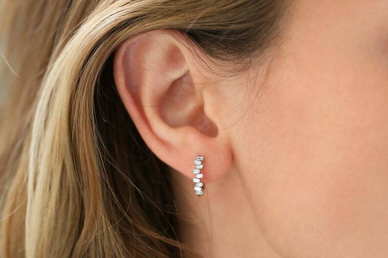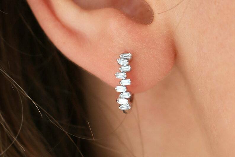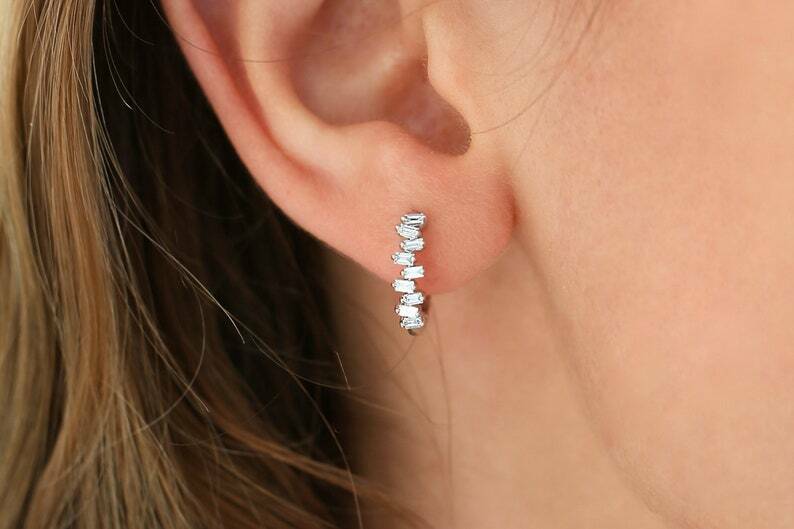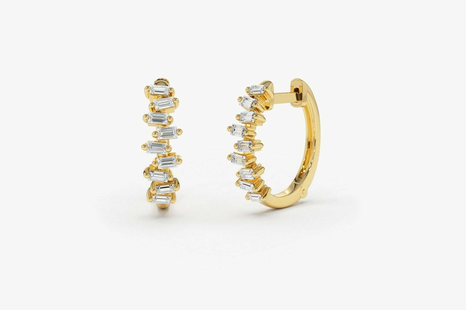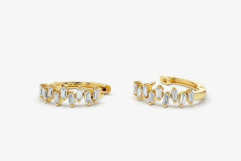 1.2ct Baguette Cut Diamond Latch Back Huggies Earrings 14k Yellow Gold Finish