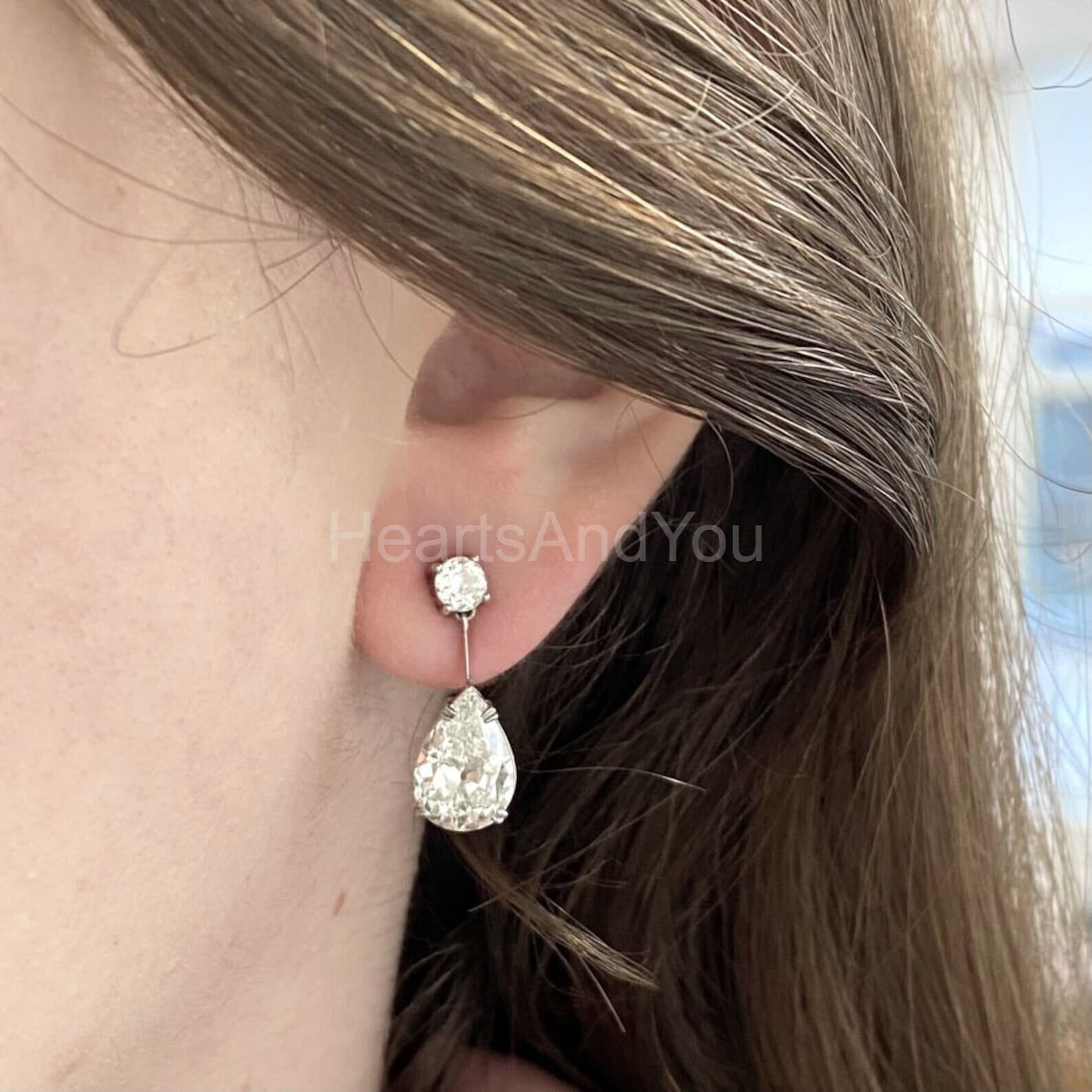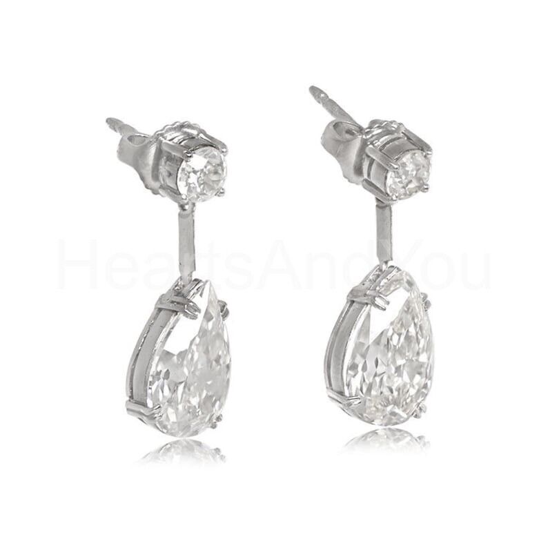 1.2ct Pear Cut Simulated Diamond Dual Prong Drop Earrings 14k White Gold Plated