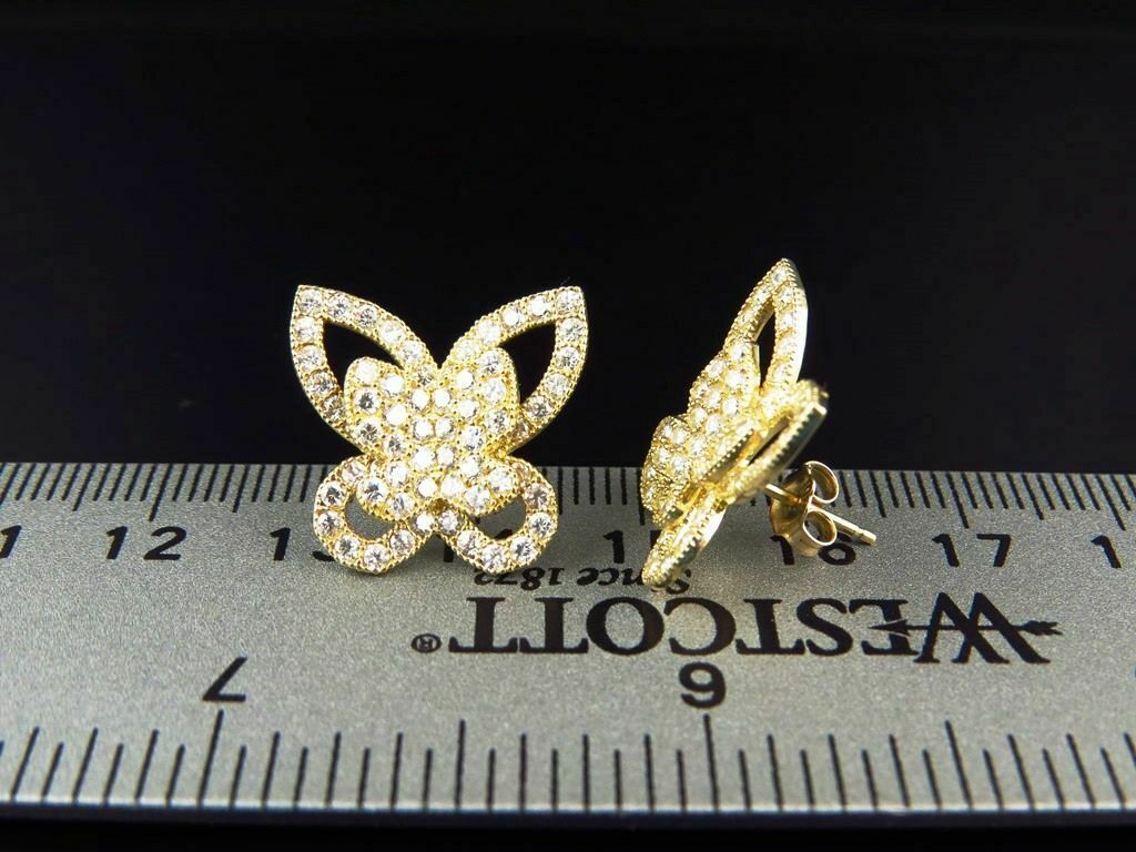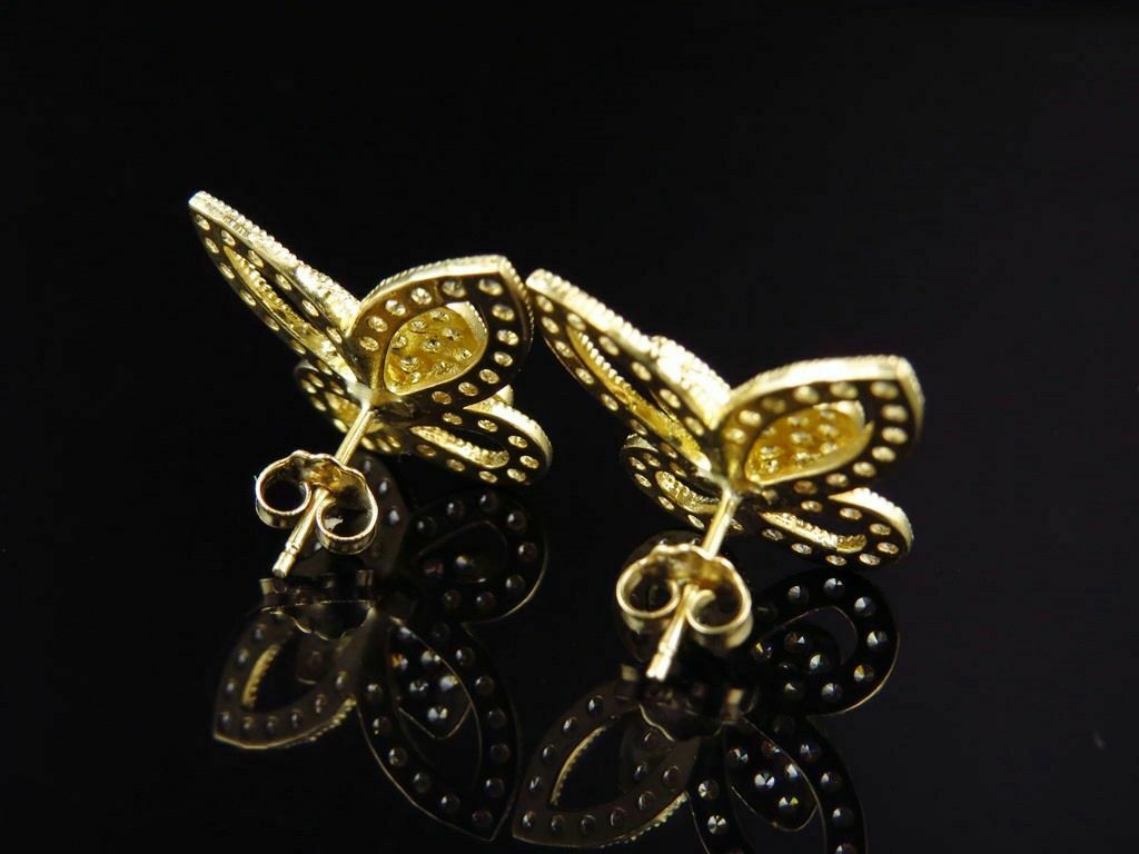1.2ct Round Cut Diamond Butterfly Design Stud Earrings Women 14k Yellow Gold Over