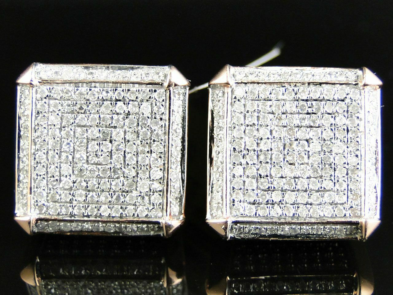 1.2ct Round Cut Diamond Iced Square Cube Cluster Stud Earrings 14k Rose Gold Finish