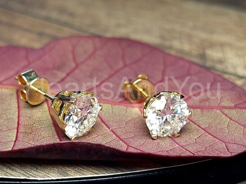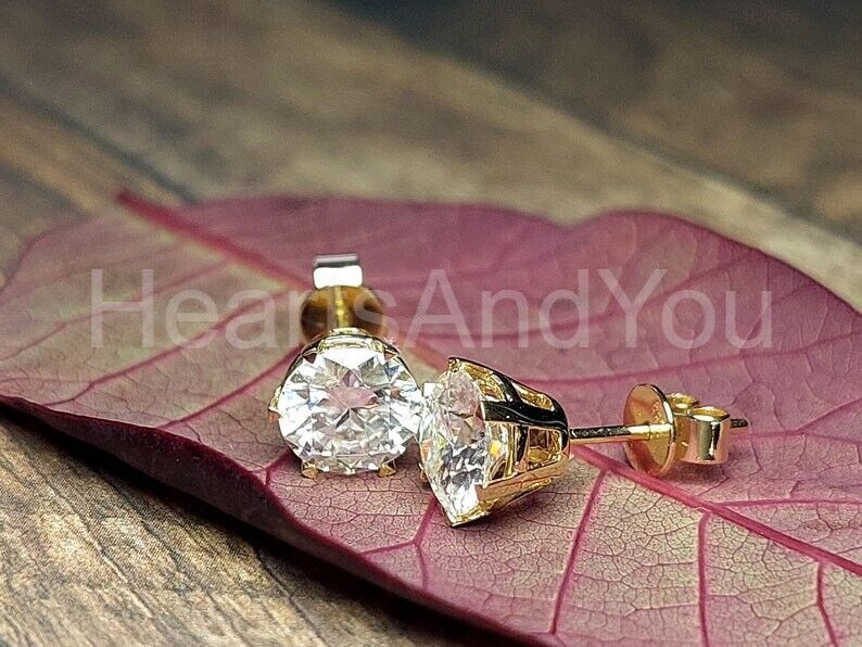 1.2ct Round Cut Moissanite Solitaire Stud Earrings Women 14k Yellow Gold Plated