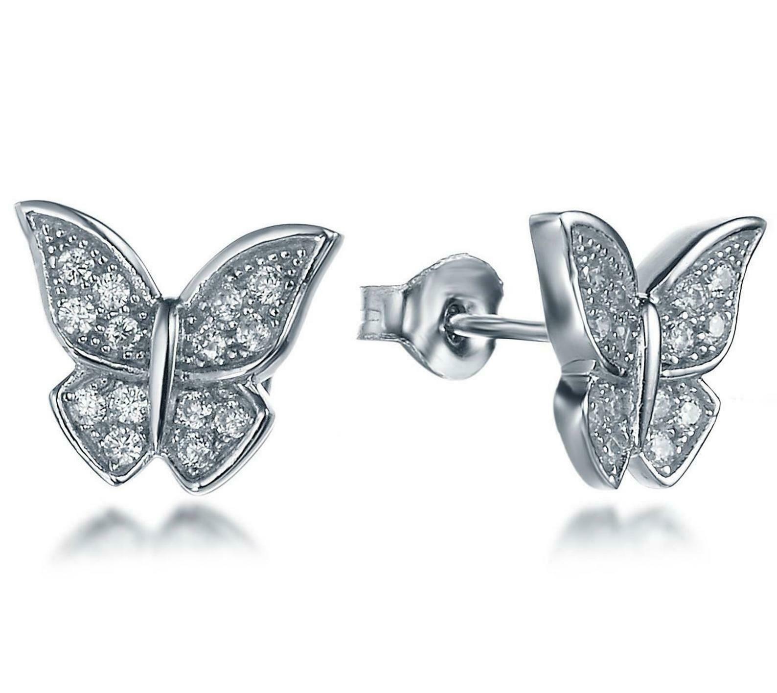 1.2ct Round Cut VVS1D Diamond Butterfly Design Stud Earrings 14k White Gold Over