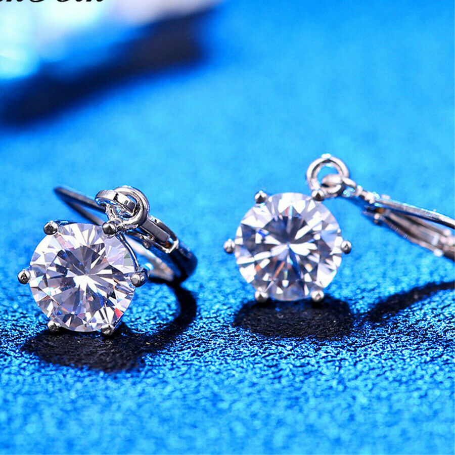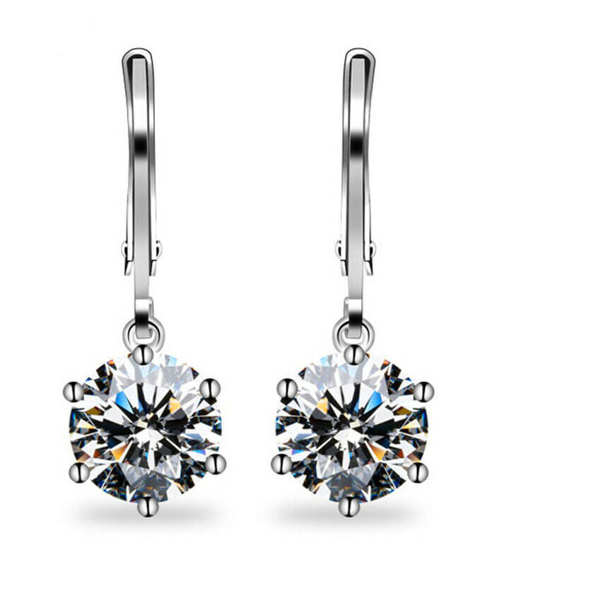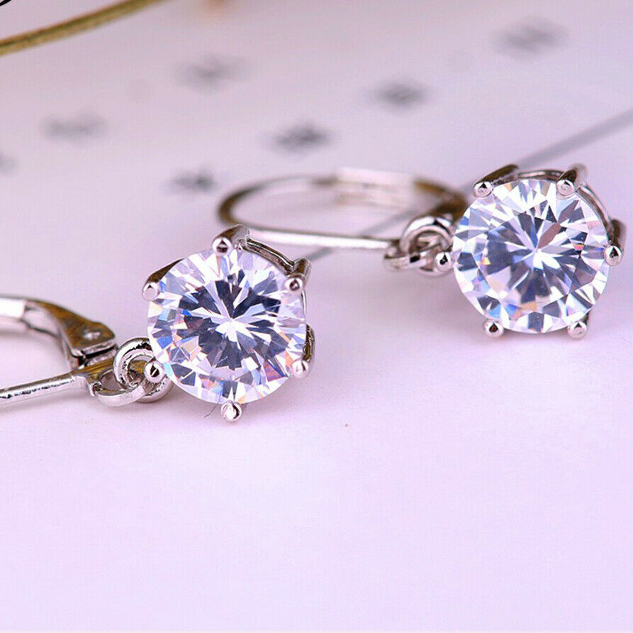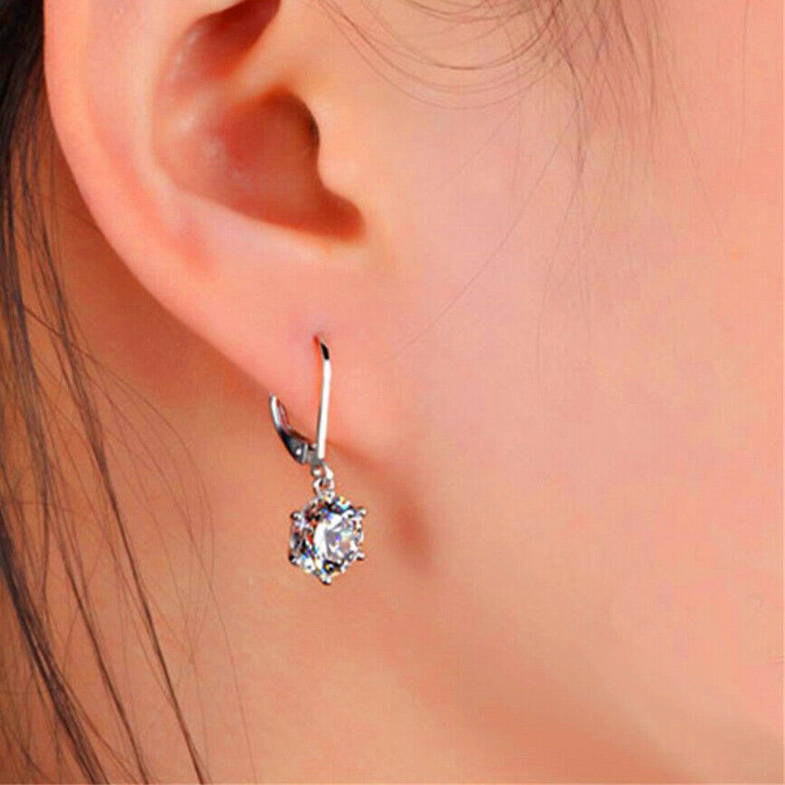 1.2ct Round Cut VVS1D Diamond Lever Back Drop Earrings 14k White Gold Finish